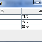 public class DataModelTest { public static void main(String[] args) {// TODO Auto-generated method stub String rows[][] = { { "수곡동", "야구" }, { "모충동", "족구" }, { "개신동", "축구" } };String headers[] = { "이름", "종목" };String sports[] = { "야구", "축구", "족구", "기타" }; JComboBox comboBox = new JComboBox(sports);comboBox.setMaximumRowCount(4); TableCellEditor editor = new DefaultCellEditor(comboBox);JFrame fra..