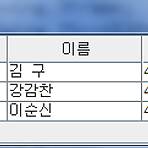 public class JTableTest extends JFrame { JTableTest() {super("JTable Test");String title[] = { "번호", "이름", "나이" };String data[][] = { { "1", "김 구", "40" }, { "2", "강감찬", "42" },{ "3", "이순신", "41" } };JTable table = new JTable(data,title);//테이블객체 생성, 데이터와 타이틀을 인자로 가짐JScrollPane sp = new JScrollPane(table); //스크롤페인 붙임getContentPane().add(sp, BorderLayout.CENTER);//setSize(300,150);setVisible(true)..