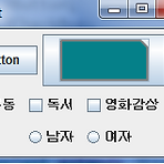 Swing은 AWT 보다 약간 더 세련 되어졌다.윈도 창의 종료 버튼의 이벤트를 추가하였다.AWT와 마찬가지로 패널을 이용한다. public class JButtonTest extends JFrame {public JButtonTest() {super("Test");JPanel panel = new JPanel();JButton btn = new JButton("Button");panel.add(btn); ImageIcon icon1 = new ImageIcon(".\\src\\1.png"); //기본 이미지ImageIcon icon2 = new ImageIcon(".\\src\\2.png"); //눌렸을 때 이미지JToggleButton tg = new JToggleButton(icon1); //토글버..