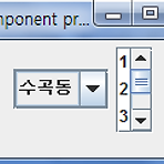 public class ComboTest extends JFrame {JList jl;JComboBox com;String name[] = { "수곡동", "도곡동", "용암동", "분평동", "개신동" };String count[] = { "1", "2", "3", "4", "5" }; public ComboTest() {super("JComponent practice");Container c = getContentPane(); //Returns the contentPane object for this frame.c.setLayout(new FlowLayout()); //컨테이너의 레이아웃 설정 com = new JComboBox(name); //콤보박스에 name 붙임JScrollPane s = ne..