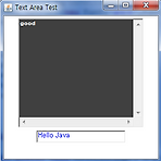 class TextAreaText extends Frame {public TextAreaText(String str) {super(str); Panel p = new Panel();//TextArea txt1 = new TextArea(10,30); //행열 크기 10x30TextArea txt1 = new TextArea("good",15,35); // +@ 초기 문자 셋팅TextField txt2 = new TextField("Hello Java", 20); //txt1.setText("Java World");txt1.setBackground(Color.DARK_GRAY); //영역 배경색 지정txt1.setFont(new Font("굴림체",Font.BOLD,10)); //폰트 지정txt1.setF..