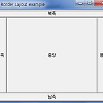 class BorderLayoutTest extends Frame {public BorderLayoutTest(String str) {super(str); setLayout(new BorderLayout());add("North", new Button("북쪽"));add("South", new Button("남쪽"));add("West", new Button("서쪽"));add("East", new Button("동쪽"));add("Center", new Button("중앙")); setSize(200, 200);setVisible(true);}} public class BorderLayoutMain {public static void main(String[] args) {// TODO Auto-gene..